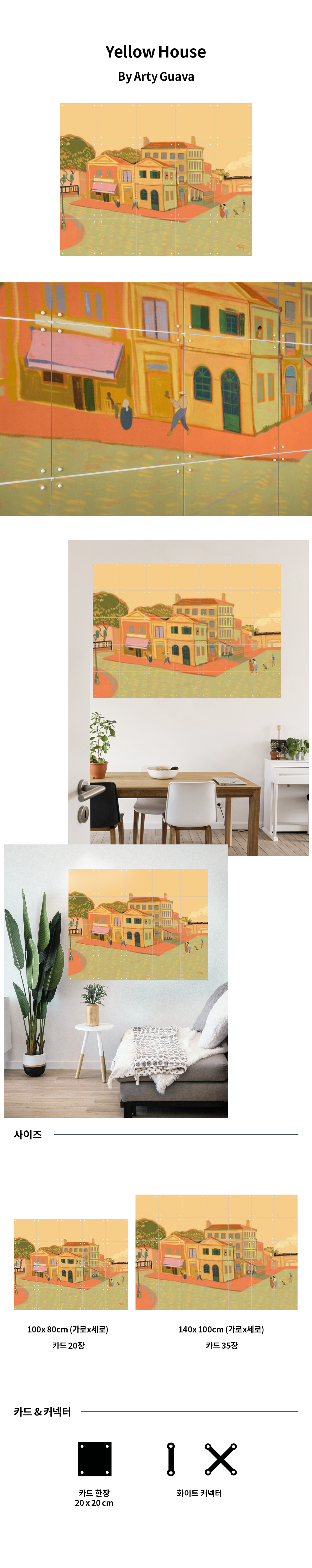 고흐가 생전에 남긴 편지에서 "이 집에서 나는 진실로 살 수 있고, 숨 쉬고, 생각하고, 그릴 수 있다.”라고 <노란 집>을 묘사했다고 합니다. 고흐를 꿈꾸게 한 이 집을 Arty Guava만의 감성을 더해 재해석한 작품 Yellow House - Arty Guava 입니다.