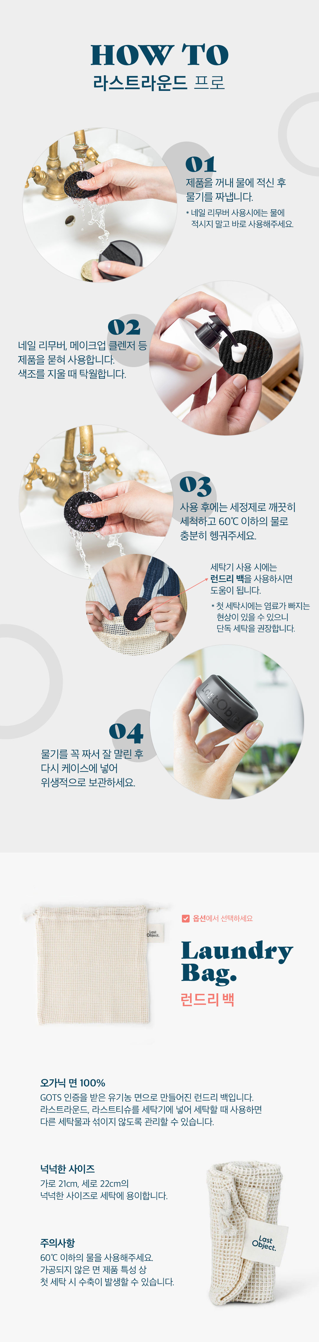 런드리백(옵션 선택): 세탁 시 함께 사용할 수 있는 유기농 면 소재의 튼튼한 런드리 백도 구매해보세요.