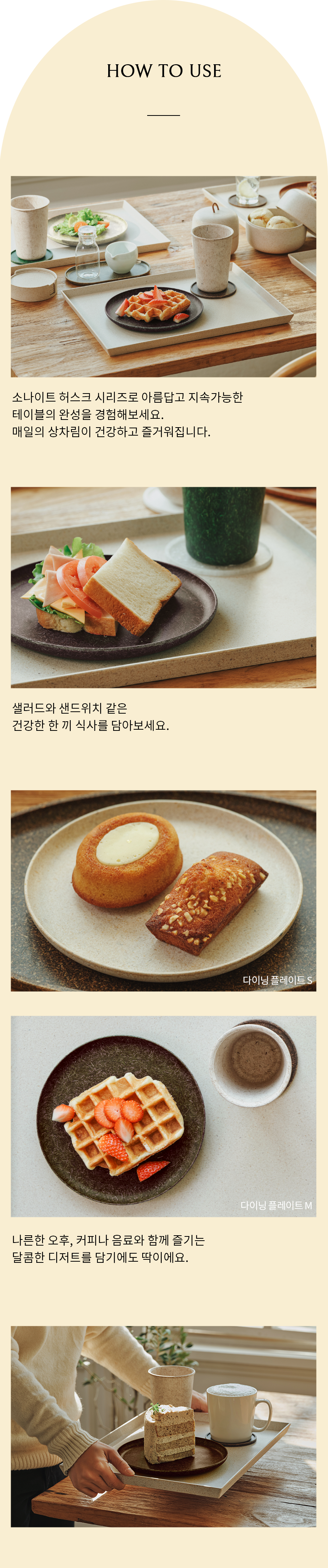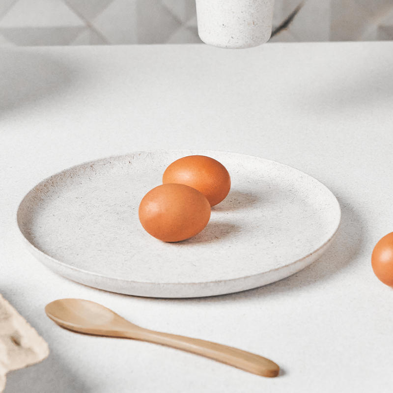 벼 껍질을 업사이클링한 소재로 만들어진 다이닝 플레이트입니다. 내추럴한 질감과 색감 덕에 음식이 더욱 신선해 보일 거예요!