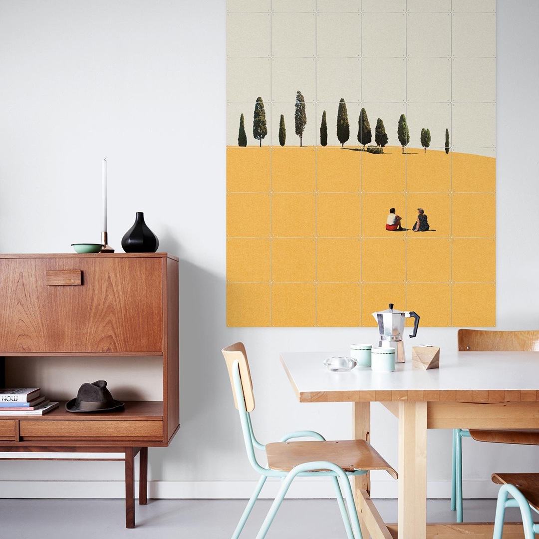 친구들과의 시간, 혼자만의 즐거움, 나른하고 발랄한 장면들을 재치 있게 캐치하고 모던한 색채로 담아낸 콜라주 작품입니다.